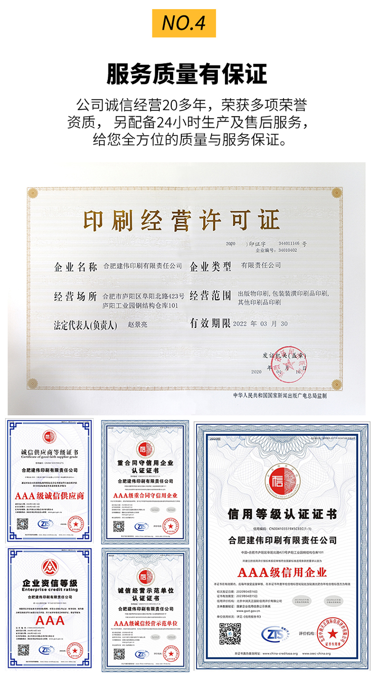 建伟印刷是一家专业从事排版、设计、印刷、后期加工等印刷集成一体的加工型企业;拥有全新德国印刷设备,各式装订、磨切、水性覆膜机、过胶、烫金、压凸、平台打号机以及自动折页机、骑马装订机、切纸机等设备一应俱全。欢迎拨打咨询热线:400-998-9116 / 0551- 65656450