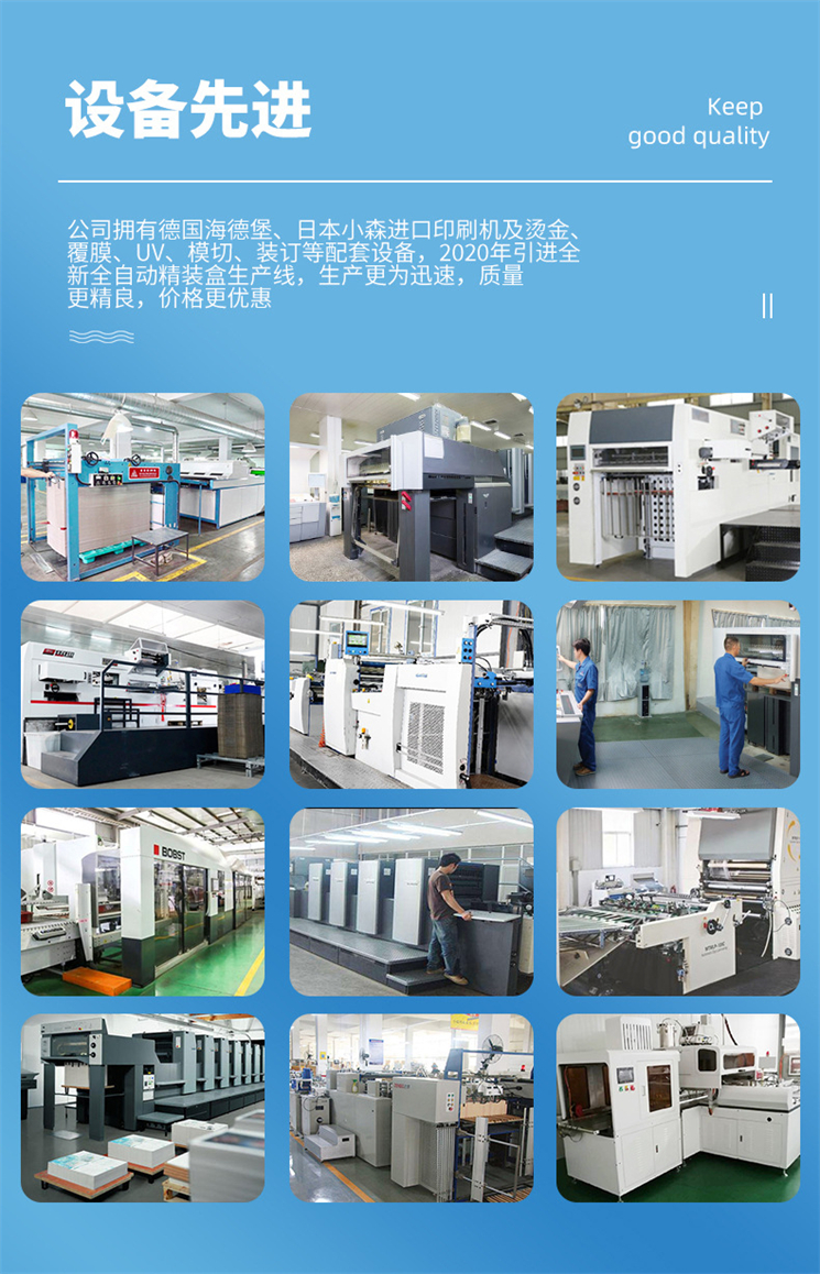 合肥建伟印刷有限责任公司是一家拥有20多年包装印刷经验的生产型企业,公司主营礼品盒、精装盒、彩盒、彩箱、手提袋、高档画册、台历挂历等产品的定制印刷服务,拥有德国海德堡、日本小森进口印刷机及烫金、覆膜、UV、模切、装订等配套设备,2022年引进全新全自动精装盒生产线,制作更精良,价格更实惠。